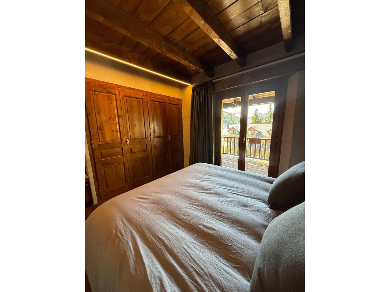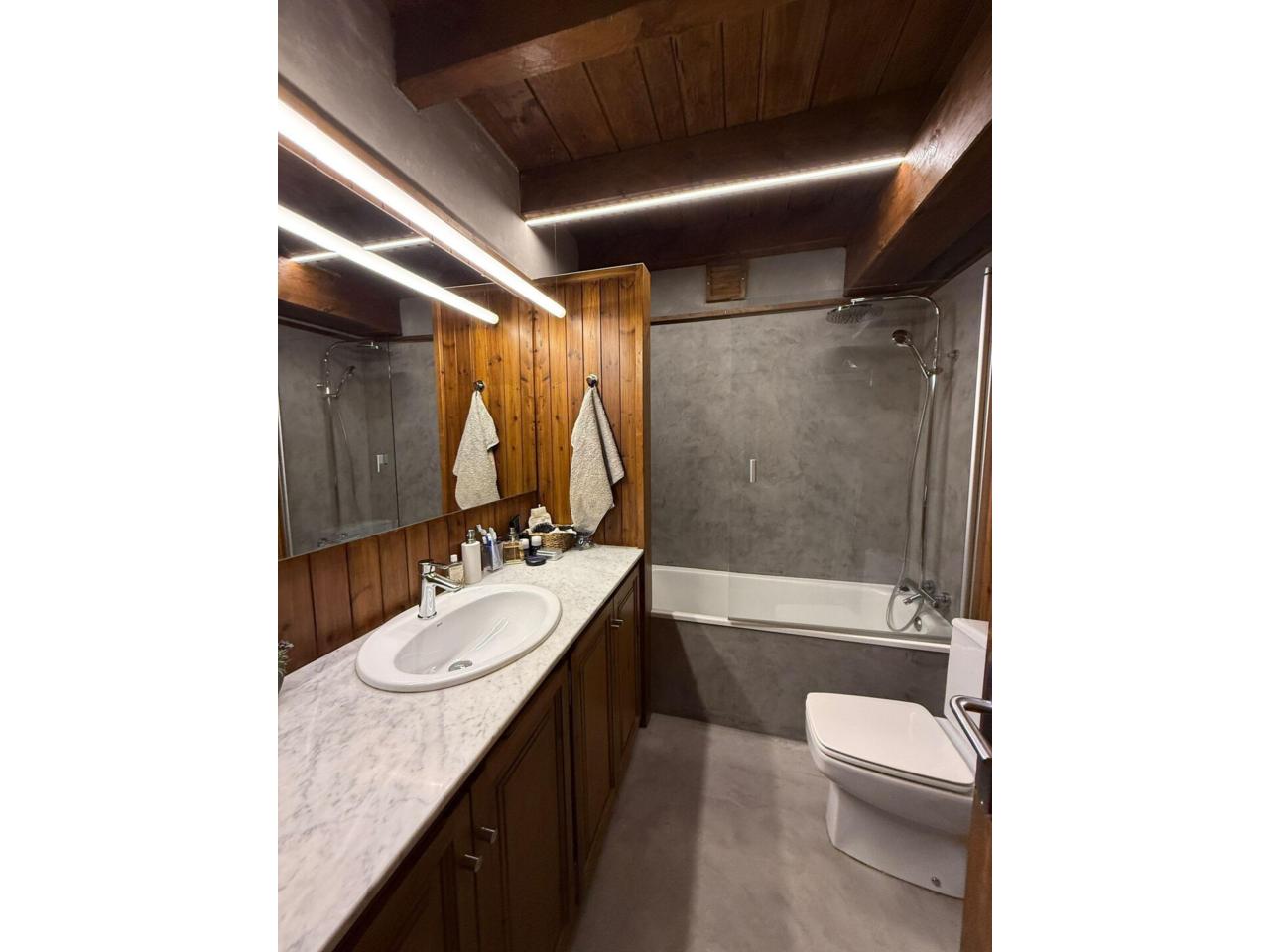 L'habitatge compta amb una àmplia zona de dia composta per una cuina oberta que es presenta totalment equipada. En aquest mateix espai, es disposa el lluminós saló-menjador amb llar de foc, que ofereix un ambient càlid després d'una jornada d'esquí. Des d'aquí, s'ofereix sortida a un còmode balcó des d'on gaudir de les precioses vistes que ofereix la zona. La zona de nit compta amb dos dormitoris dobles amb armaris de paret i dos banys complets amb banyera.